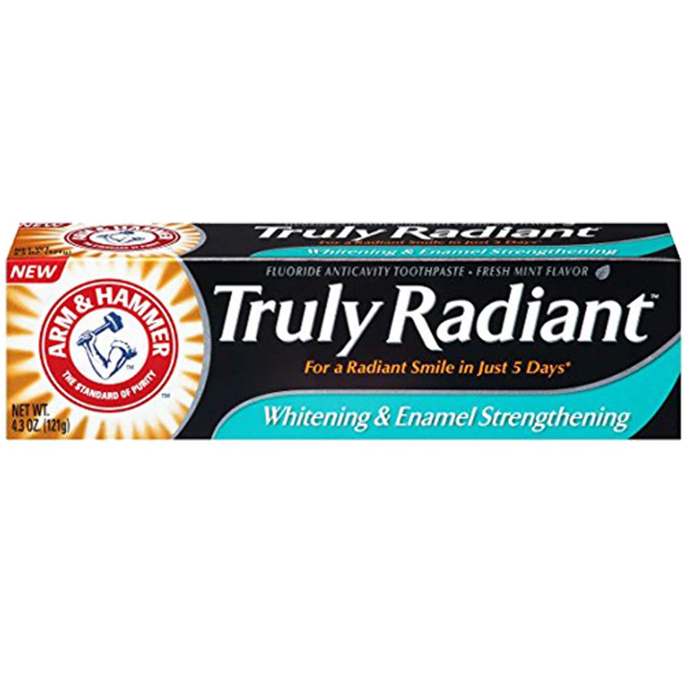 Arm & Hammer Truly Radiant Fresh Mint Flavor Whitening & Enamel Strengthening Fluoride Anticavity Toothpaste.The Standard of Purity.For a radiant smile in just 5 days.