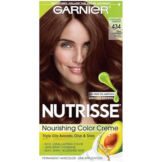 Garnier Nutrisse Herba Shine Hair Color, Deep Chestnut Brown-434Richer, long-lasting color100% gray coverageSilkier, shinier, more nourished hair