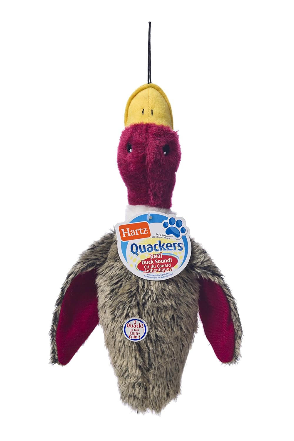 This realistic duck brings the wild inside with lifelike features and coloring. Your pup’s new feathered friend is constructed from tough materials to withstand chewing and everyday ruff-housing. The quacking sound mechanism inside will surprise and delight any playful pooch when it’s time for a game of fetch or tug. Lightweight and easy to carry, throw and catch, your hunting hound will be ready to duck, duck, go! Tiresome dogs will also enjoy cuddling up to this velvety soft mallard for a restful nap. Remember to supervise your pup with any toy.